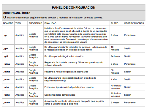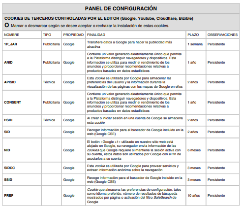 COOKIES UTILIZADAS EN ESTE SITIO WEB