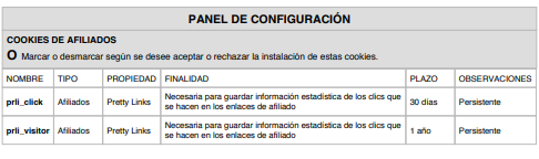 Cookies de afiliados: permiten hacer un seguimiento de las visitas procedentes de otras webs, con las que el sitio web establece un contrato de afiliación (empresas de afiliación).