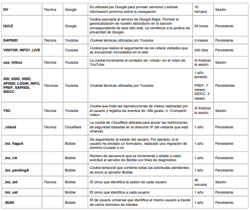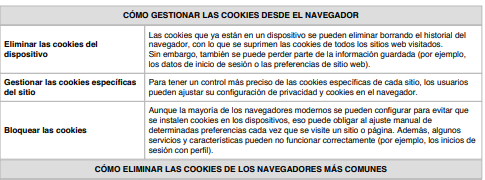 Las cookies y otras tecnologías similares tales como local shared objects, flash cookies o píxeles, son herramientas empleadas por los servidores Web para almacenar y recuperar información acerca de sus visitantes, así como para ofrecer un correcto funcionamiento del sitio. Mediante el uso de estos dispositivos se permite al servidor Web recordar algunos datos concernientes al usuario, como sus preferencias para la visualización de las páginas de ese servidor, nombre y contraseña, productos que más le interesan, etc.